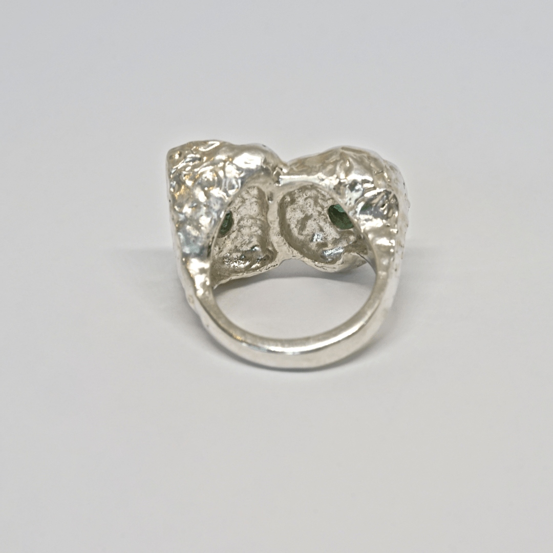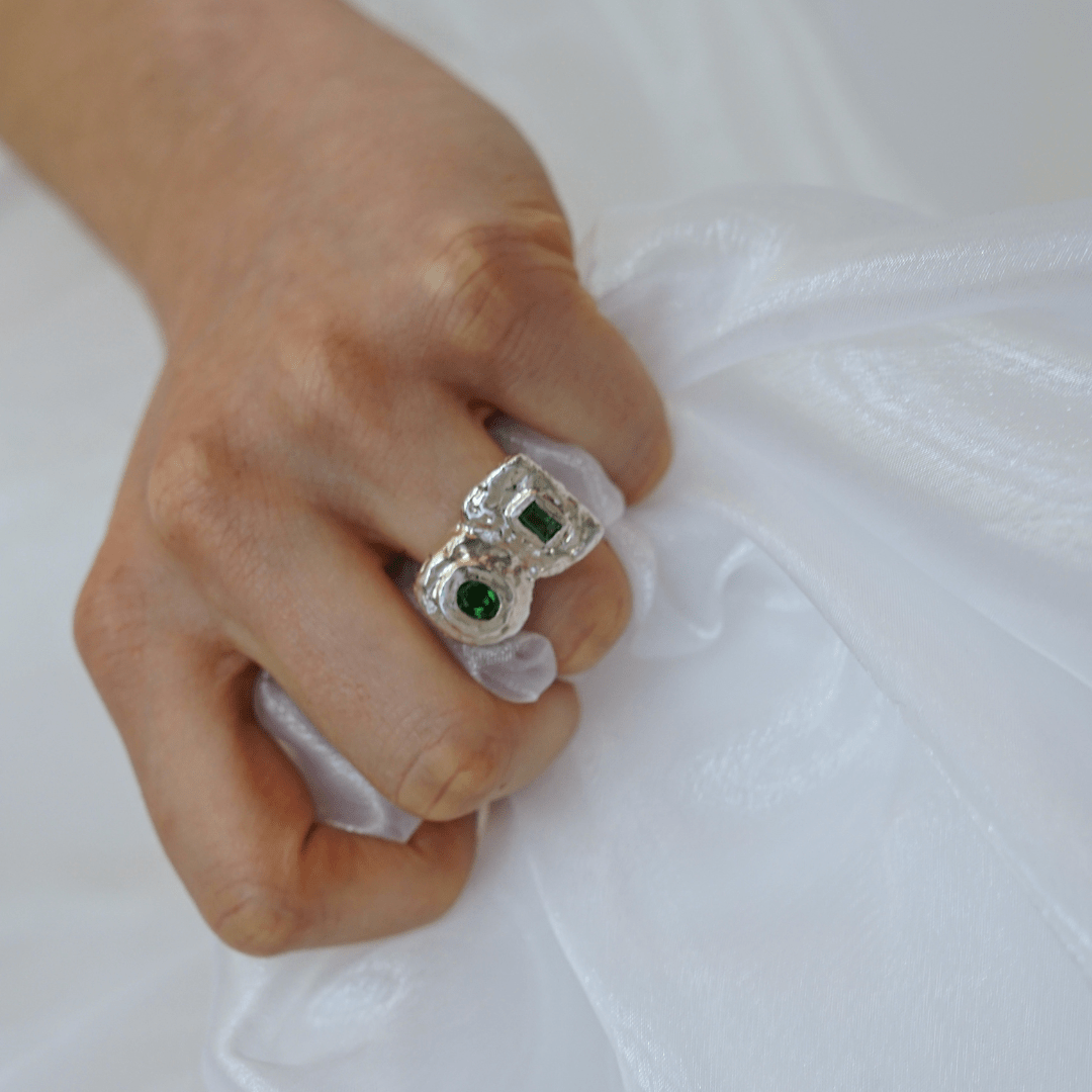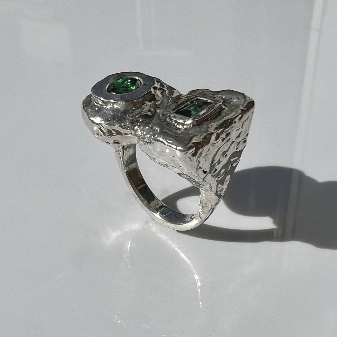 Anillo en plata 9.25 y baño de oro de 22K con Turmalina verde.